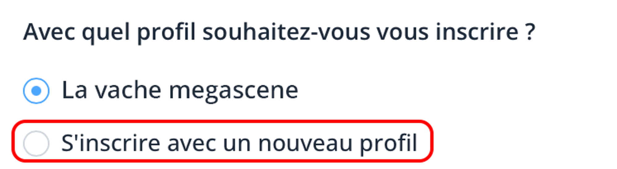 Si vous souhaitez inscrire plusieurs personnes avec la même adresse mail, vous pouvez cocher la case « S’inscrire avec un nouveau profil » dans l’encart « Avec quel profil souhaitez-vous vous inscrire » dans la catégorie Informations personnelles.